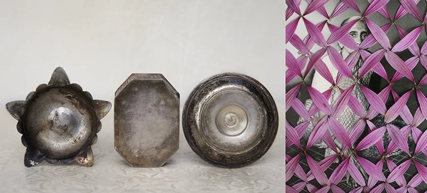 Color Falls Down is a conversation with my ancestors and also an effort to reconcile the cultural dualities that have helped form my hybrid identity. This conversation began with the domestic objects and family photographs that I carried with me in my suitcase and which have been my companions ever since. My self-portrait is the constant that links my past with my present. In this work I am neither Indian nor American, but the link that chains generations together.